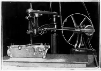 Crankcases have not been lapped by hand in the plant of the Marmon Motor Car company at Indianapolis since J. W. Anderson, mechanical engineer of the company, built, at a very low cost, a machine that does the work better, and saves 47 cents on the cost of each crankcase. A discarded radial drill press, reclaimed from the junk heap, is the principal part of the apparatus. The crankcase is fastened to a rotating vertical arm of the press and is given a supplemental to-and-fro movement by an eccentrically driven shaft. Ground glass was formerly used as the lapping compound. Worn-out sand from sand-blasting machines has replaced the ground glass. Mixed with coal oil, this sand has been found more satisfactory than the ground glass.