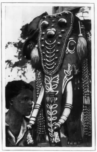 When the Maharajah of Mysore recently celebrated the twenty-fifth anniversary of his coronation, Europeans invited to the ceremony witnessed one of the most gorgeous processions for which India is noted. Even the royal elephants, which participated in the parade, were clothed in plush, gold and precious gems. The beast which bore the gold howdah of the maharajah had golden rings on his tusks, and his head, with the exception of peepholes for the eyes, was completely covered by a jewel-studded and gold-ornamented headdress, with a floral design painted on it in brilliant colors.