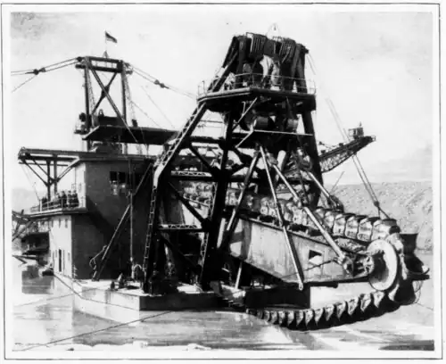 Cutting a Channel 500 Feet Wide, the Great Dredges Need Only Enough Water in the Pond to Float Them, For the Water Goes Along as They Move Forward in the Cut