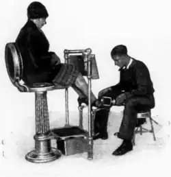 ELECTRIC SHOE-SHINING STAND HAS SCREEN FOR WOMEN
