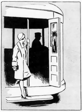 MIRROR ON STREET-CAR DOOR HELPS PROTECT WOMEN