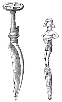 Figs. 41, 42.—Bronze knives from Denmark, one-third of the actual size.