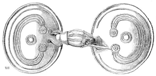 Fig. 62.—Bronze brooch, Mecklenburg, three-tenths natural size. Showing the manner in which it has been mended.