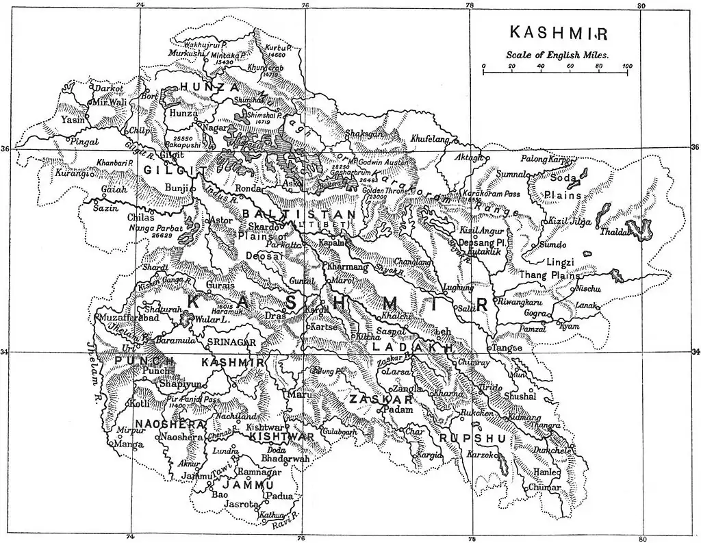 Note. More complete and accurate details of mountains and glaciers of Muztagh-Karakoram Range will be found in the sketch map appended to Dr Arthur Neve's Thirty Years in Kashmír, published in 1913.