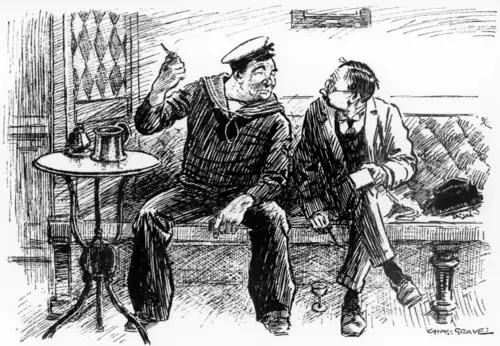 Stoker. "I see the torpedo approachin' us; so, without waitin' fer any orders, I dives overboard, just gives 'im a flick on 'is little rudder, an' off 'e goes to starb'd an' passes us 'armlessly by."