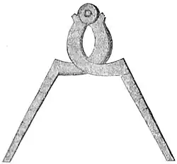 With the Walney Island relics which are above described, and which, as has been said, have been attributed to the last years of the fourteenth century, a curious pair of brass dividers or "compasses" was discovered. This instrument, the upper part of which is shown in the annexed sketch, is so contrived as to open when pressure is applied to the bowed parts of the legs, and to close when pressure is applied to the straight parts. The relic is preserved in the Hydrographic