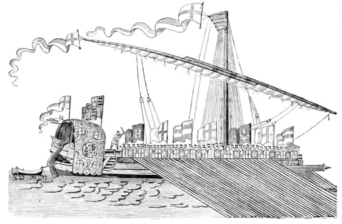 and Bark of Bullen (60 tons), and the Henry Grace à Dieu had apparently been re-named the Edward.[1] There had also been added a French prize, the Black Galley, taken in 1549, and the Lion, taken from the Scots by the Pauncy, but presently lost off Harwich.
