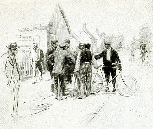 Bicycle riders on the Belgium country roads distributing socialistic literature.