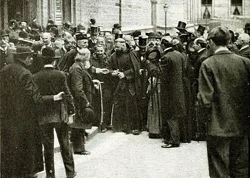 Monks of the Capuchin order greeted by their friends after being fined by the Conventional tribunal for refusing to give up life in common. Napoleonic system, have governed France,