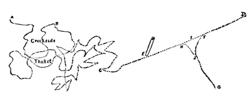 So if he could get off the ground, and be left in peace for half an hour to cool off, and for the trail to stale, he knew he would be safe. When, therefore, he tired of the chase, he made for the Creekside brier-patch, where he 'wound'—that is, zig-zagged—till he left a course so crooked that the dog was sure to be greatly delayed in working it out. He then went straight to D
