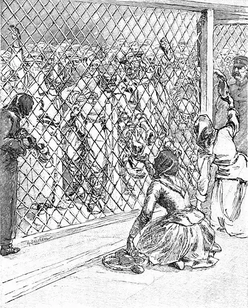 MEN'S CAGE, CONVICT BARGE—EXILES BUYING FOOD.