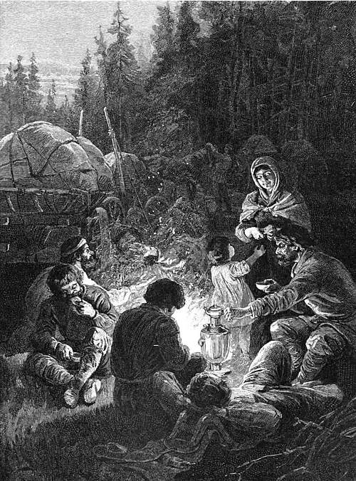 said, "Vot granítsa" [Here is the boundary]. We sprang out of the tárantás and saw, standing by the roadside, a