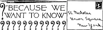 Dear St. Nicholas: Will you please tell me the cause of a rainbow in the night? Last fall, about nine o’clock in the evening, a rainbow appeared in the north, and no one knew the cause of this. I shall be very grateful if you will explain this for me.