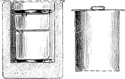 A sectional view of a fireless cooker and its cylindrical cover. |