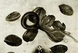 BUT TOUCH JUST THE TIP OF ONE, AND IT “EXPLODES” AND THROWS ITS SEEDS IN EVERY DIRECTION. shows some of the strange forms into which this impatient touch-me-not contorts itself.