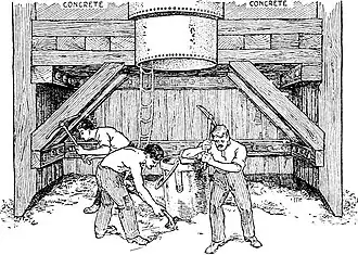 We dragged ourselves into the lock and the door closed behind us; then we waited an interminable time for the compressed air to be let out. The chamber filled with fog as the pressure was reduced, and, after a time, the upper door clanged open, and we jumped out into the sunshine.
