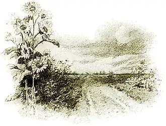 The wild carrot grows in profusion all around, and we must stop and look at a plant. The feathery leaves, almost the prettiest part of the plant, grow in a bunch upon the sand and from them rise the rough green stalks. How delicate the flowers are! The little brown speck in the center of each flower seems to accentuate the delicacy, and a pleasant carroty odor lingers around the plant, and grows stronger as we break the stems.