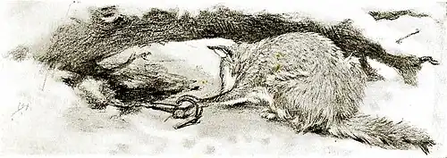 On the third day he caught a grouse and tied it by the leg under the log, a little way back from the trap—and he tied it in such a way that it would flutter and be more certain to attract attention. It was a cruel thing to do, but the old man wanted to catch Silver-gray, and he was willing to do anything if he could only fool him at last.