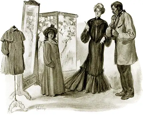 tion to follow after her. There was a silk counter not far distant, The wonderful lady stopped while the polite clerk unfolded yard after yard of shimmering silk. At last he measured off a great glowing heap, and the lady paid for it from a fat roll of bills extracted from her silver bag. Then, followed by the admiring gaze of the clerks and the patter of Lucy's shabby little shoes, she swept to the lace counter.