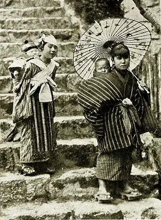 “The babies are perfectly happy, and hardly ever cry." colors (and they are n’t really big—nobody is, in Japan) are the maiko and the geisha. These are the pretty girls who dance and play the lute and sing, to entertain you while you ’re eating your dinner at a tea-house.