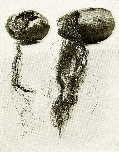 Dear St. Nicholas: This peculiar specimen we chanced to come across in a secluded and not used cellar. The rats had carried the hickory-nuts in the cellar, and had, I believe, eaten the greater part of the nut. I don’t know what made the hair, and I became real interested to find out. We found almost a quart of nuts with this apparent hair growing from them. Can you tell me what this is and the cause for it? Your interested friend,, Opal Cranor.