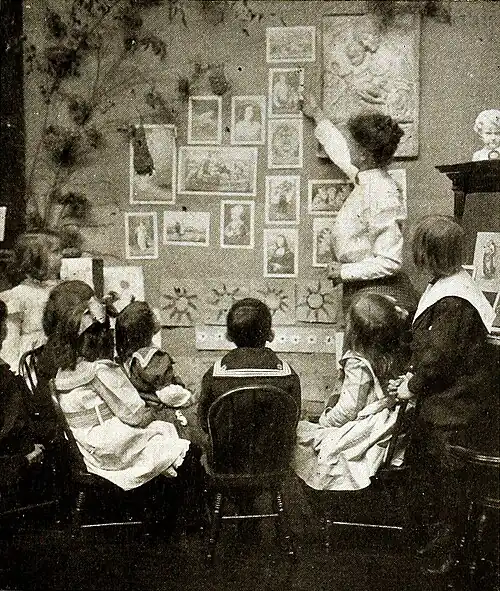 A Kindergarten Class. the holder of a degree, also, from St. Andrews University, and formerly head mistress of the Bedford Park High School, London. To her English training have been added several years of successful teaching in America. Believing that laying the foundation for the child’s education in the earliest years is of supreme importance, the principals feel that no one could be better equipped for this work than the head of their Junior Department.