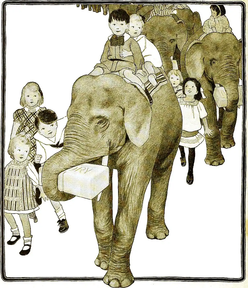 What makes this beast so reconciled To be the friend of every child? Why, ’tis because his trunk is packed With IVORY SOAP, and he’ll not act As once he did in Timbuctoo |