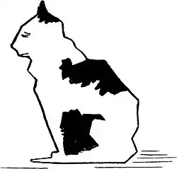 The cat jumped nimbly to the top of a big piece of coal, where she put up her back at the dog and made a great hissing noise.