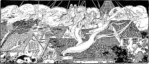 The wind comes rushing round the eaves,Shakes the loose catch, and cries, “How do?”Then whirls away to chase the birdsAnd tumble down a nest or two;But though he ’s rough as he can be,He always has a laugh for me.