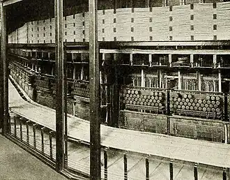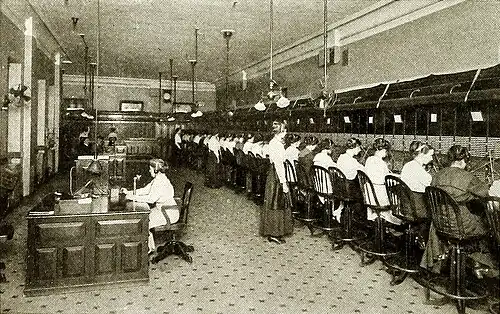 A CORNER OF THE SWITCHBOARD VIEWED FROM THE REAR. THE WHITE BANDS ABOVE AND BELOW ARE CABLES CONTAINING TELEPHONE WIRES. buck-shot. ‘Stop the car and scatter,’ cried the police sergeant, but Cy had already jammed on the emergency brakes and brought the car up with such a jerk that they were all but pitched out. Then the police ran for cover, but in the meantime