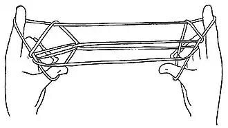 strings tight. The figure is extended between the index fingers and the middle fingers closed on the palms (Fig. 302).