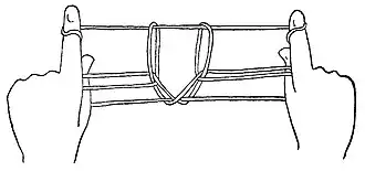string with the middle, ring and little fingers of each hand (Fig. 419). Separate the hands and draw the strings tight.