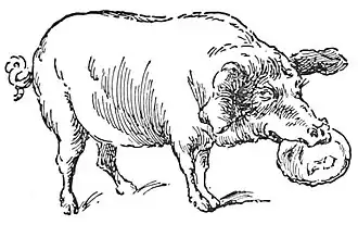 "Seat yourself on my snout," said the pig, "and I'll carry you over."