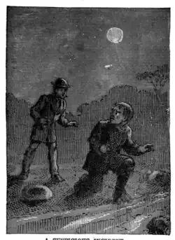 All the town was drifting toward the graveyard. Tom's heart-break vanished and he joined the procession, not because he would not a thousand times rather go any where else, but because an awful, unaccountable fascination drew him on. Arrived at the dreadful place, he wormed his small body through the crowd and saw the dismal spectacle. It seemed to him an age since he was there before. Somebody pinched his arm. He turned, and his eyes met Huckleberry's. Then both looked elsewhere at once, and wondered if anybody had noticed anything in their mutual glance. But everybody was talking, and intent upon the grisly spectacle before them.