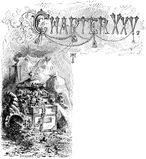HERE comes a time in every rightly constructed boy's life when he has a raging desire to go somewhere and dig for hidden treasure. This desire suddenly came upon Tom one day. He sallied out to find Joe Harper, but failed of success. Next he sought Ben Rogers; he had gone fishing. Presently he stumbled upon Huck Finn the Red-Handed. Huck would answer. Tom took him to a private place and opened the matter to him confidentially. Huck was willing. Huck was always willing to take a hand in any enterprise that offered entertainment and required no capital, for he had a troublesome superabundance of that sort of time which is not money. "Where'll we dig?" said Huck.