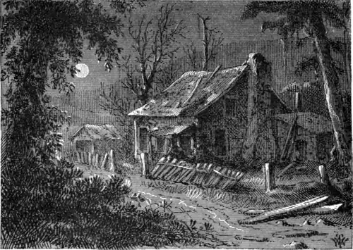 long ago, rank weeds smothering the very doorsteps, the chimney crumbled to ruin, the window-sashes vacant, a corner of the roof caved in. The boys gazed a while, half expecting to see a blue light flit past a window; then talking in a low tone, as befitted the time and the circumstances, they struck far off to the right, to give the haunted house a wide berth, and took their way homeward through the woods that adorned the rearward side of Cardiff Hill.