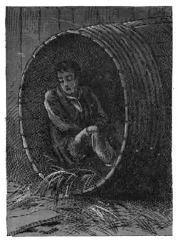 Tom got his lantern, lit it in the hogshead, wrapped it closely in the towel, and the two adventurers crept in the gloom toward the tavern. Huck stood sentry and Tom felt his way into the alley. Then there was a season of waiting anxiety that weighed upon Huck's spirits like a mountain. He began to wish he could see a flash from the lantern—it would frighten him, but it would at least tell him that Tom was alive yet. It seemed hours since Tom had disappeared. Surely he must have fainted; maybe he was dead; maybe his heart had burst under terror and excitement. In his uneasiness Huck found himself drawing closer and closer to the alley; fearing all sorts of dreadful things, and momentarily expecting some catastrophe to happen that would take away his breath. There was not much to take away, for he seemed only able to inhale it by thimblefuls, and his heart would soon wear itself out, the way it was beating. Suddenly there was a flash of light and Tom came tearing by him: