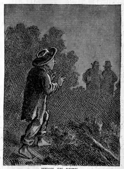 Eleven o'clock came, and the tavern lights were put out; darkness everywhere, now. Huck waited what seemed a weary long time, but nothing happened. His faith was weakening. Was there any use? Was there really any use? Why not give it up and turn in?