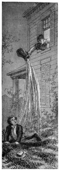 The window went up, a maid-servant's discordant voice profaned the holy calm, and a deluge of water drenched the prone martyr's remains!