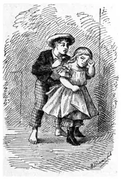 Tom tried to put his arm about her neck, but she pushed him away and turned her face to the wall, and went on crying. Tom tried again, with soothing words in his mouth, and was repulsed again. Then his pride was up, and he strode away and went outside. He stood about, restless and uneasy, for a while, glancing at the door, every now and then, hoping she would repent and come to find him. But she did not. Then he began to feel badly and fear that he was in the wrong. It was a hard struggle with him to make new advances, now, but he nerved himself to it and entered. She was still standing back there in the corner, sobbing, with her face to the wall. Tom's heart smote him. He went to her and stood a moment, not knowing exactly how to proceed. Then he said hesitatingly: