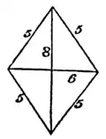 - ↑ If the two diagonals are and , and the side , the area of the rhombus is .