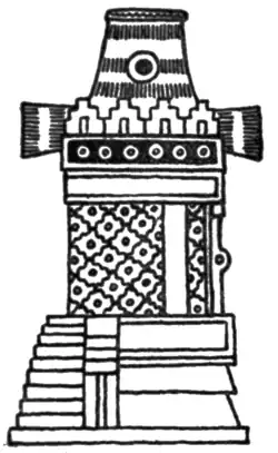 From an ancient MS. This led to a sort of terrace or gallery, at the base of the second story, which passed quite round the building to another flight of stairs, commencing also at the same angle as the preceding and directly over it, and leading to a similar terrace; so that one had to make the circuit of the temple several times, before reaching the summit. In some instances the stairway led directly