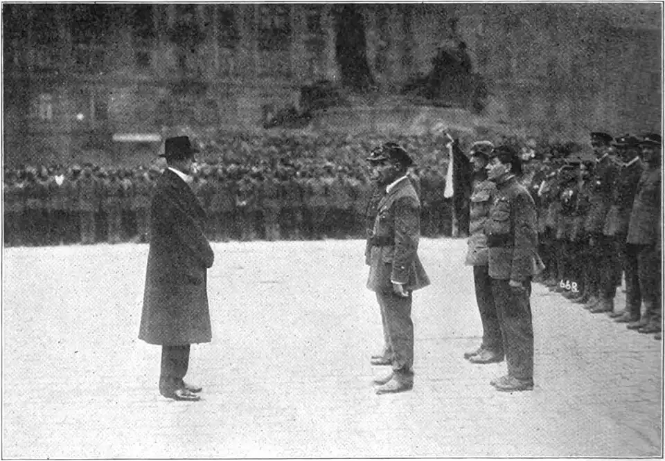 Masaryk Reviews Legionaries before Hus Monument on the occasion of ‘Old Guard’ Anniversary.