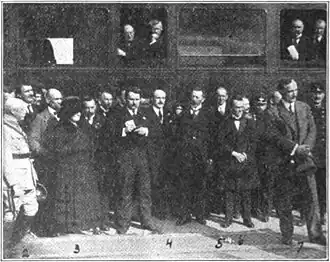 Gen. Pellé, ex-minister Vrbenský, Mrs. Beneš, Dr. Scheiner, Dr. Štěpánek, John Masaryk, Minister Franke, Minister Beneš.