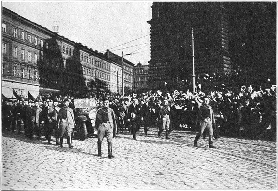 Sokols escorting Dr. Kramář passing the Museum.