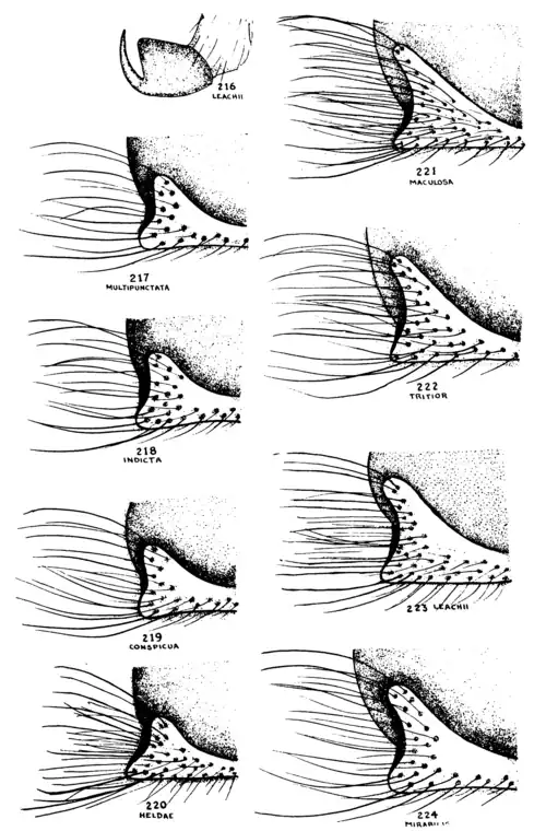FIGS. 216-224. HYPOPYGIAL SPINES, SUBGENUS BESBICUS