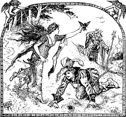 Then the Black Bird and the Green Giant resumed their natural form, for they were enchanters, and up flew Lolotte and Mirlifiche in their chariots, and then there was a great kissing and congratulating, for everybody had regained someone he loved, including the
