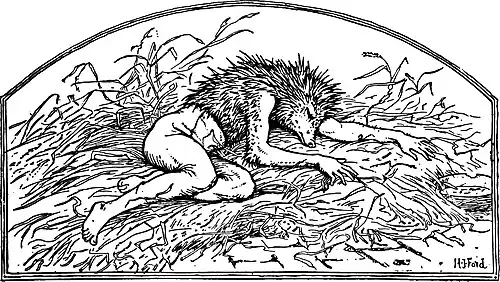 When Jack had got his bagpipes he said, ‘Daddy, do go to the smithy and have the house cock shod for me; then I’ll ride off and trouble you no more.’ His father, who was delighted at the prospect of getting rid of him, had the cock shod, and when it was ready Jack my Hedgehog mounted on its back and rode off to the forest, followed by all the pigs and asses which he had promised to look after.