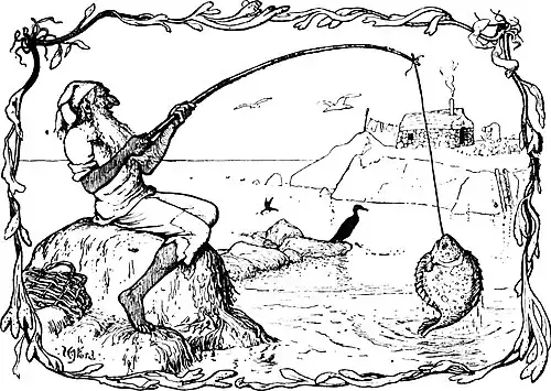 THERE was once a fisherman and his wife who lived together in a little hut close to the sea, and the fisherman used to go down every day to fish; and he would fish and fish. So he used to