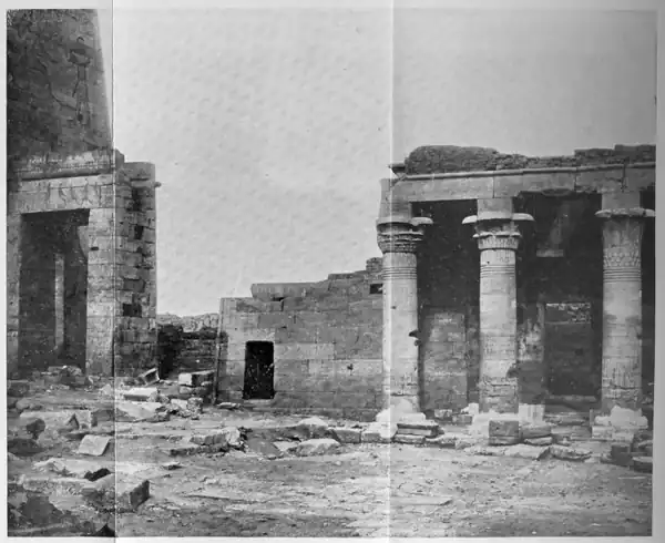 The western wall of the temple (with mediaeval Coptic doorway) occupies the centre of the picture.